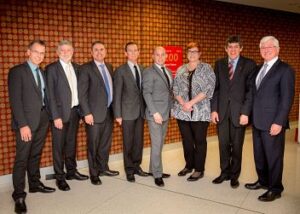 Left to right: Chris Rehn, Professor Jim Patrick, Jim Hungerford, Professor Greg Leigh, Alex Bond, the Hon. Marise Payne, Emeritus Professor Richard Henry and Dr Chris RobertsPhotographer: Paul Wright Saturday’s