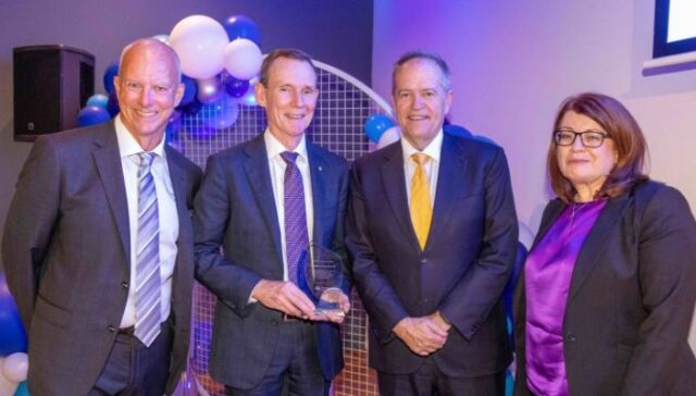 Left to Right: Kim Terrell, Managing Director, Hearing Australia; Professor Greg Leigh AO, Director, NextSense Institute; The Hon. Bill Shorten; and Elizabeth Crouch AM, Chair, Hearing Australia Professor Greg Leigh AO has been honoured with Hearing Australia’s inaugural Lifetime Achievement Award in recognition of 40-plus years spent furthering